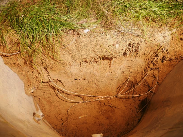 Un an après l’amendement de surface et le semis des plants d’Agrostis, une herbacée dont les graines ont été collectées sur le site d’étude, les racines se sont bien développées et ont efficacement piégé les particules polluantes. Le flux d’eau percolant à travers les résidus a été diminué par rapport à l’état initial, probablement grâce à l’amélioration de la capacité du système à retenir de l’eau interstitielle, mais également en raison de la quantité d’eau absorbée et « transpirée » par les plantes.