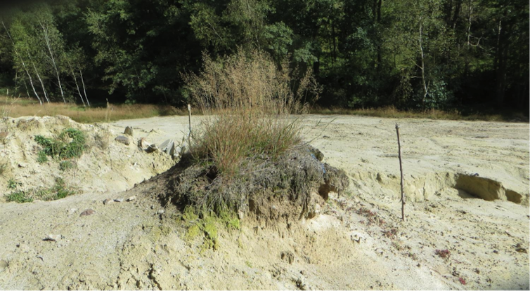 Puis, plutôt que de passer directement des résultats de laboratoire « en pot » au test sur site, une phase intermédiaire a été réalisée dans un mésocosme métrique, soit une reproduction maîtrisée d’un petit morceau, à peu près d’un m3, du site réel.